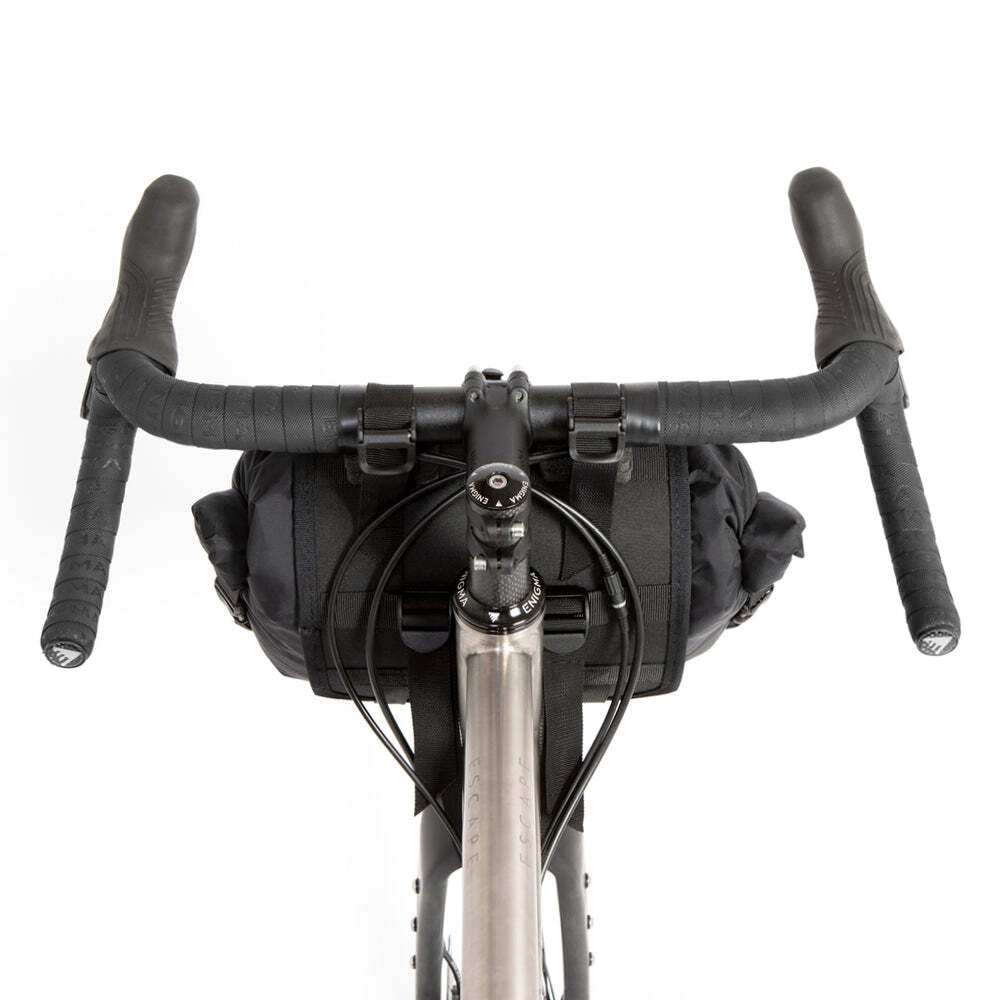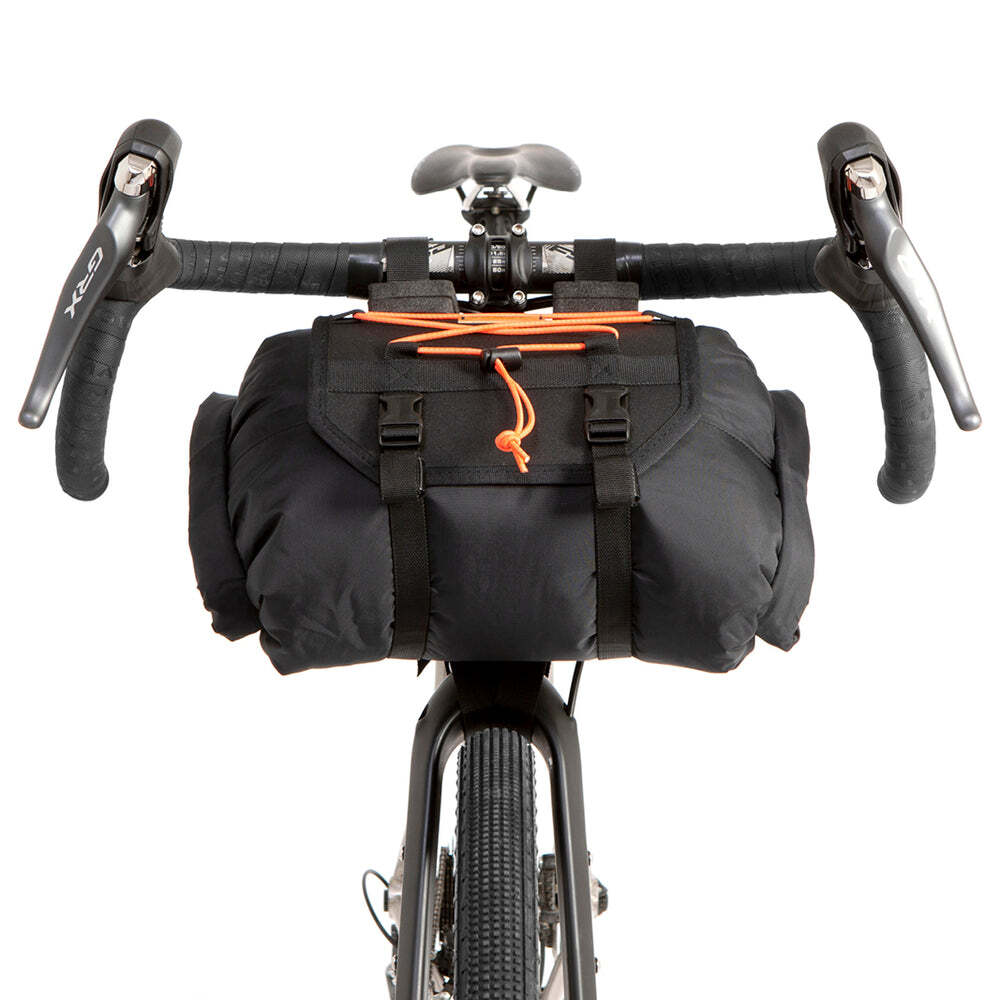 With 14L Double roll dry bagOur Bar Bag is an ideal and hassle free luggage solution for bikepacking touring or commuting on road gravel and mountain bikes. With no rack mounts or tools required the bag attaches to any bike in seconds. Foam spacers and spring-loaded cam locks provide an easy and reliable attachment to your handlebars whilst two lower retention straps wrap around the crown of the fork for added stability.