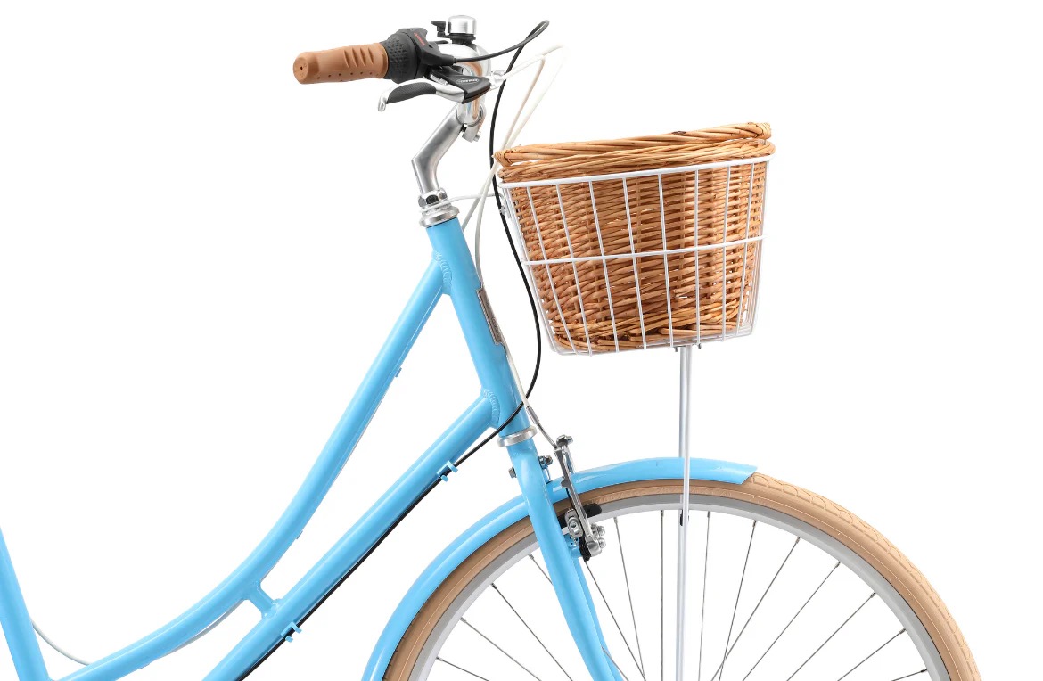 Reid Bikes Standard White Basket Kit + Wicker Basket for Vintage Bikes